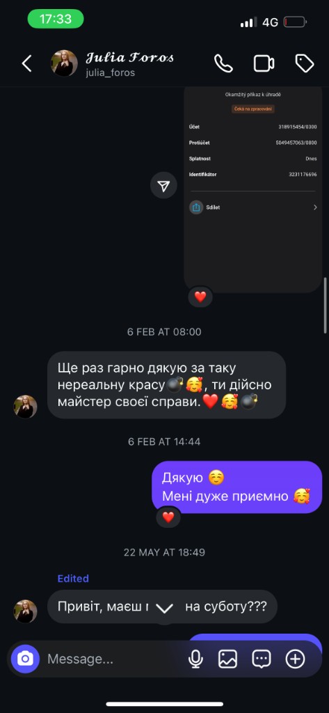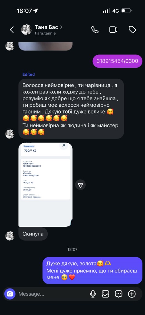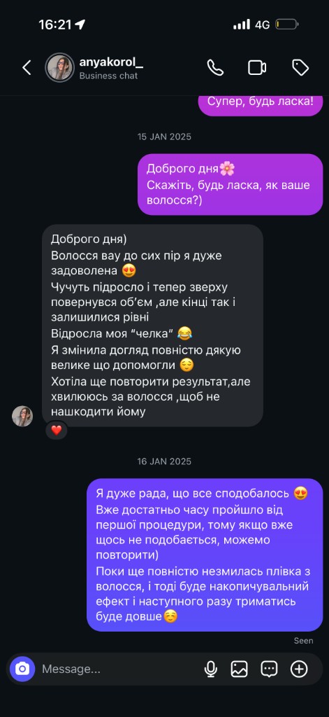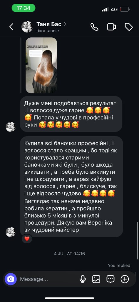 In Prague I offer keratin, hair botox, and reconstruction — always matched to your hair type.